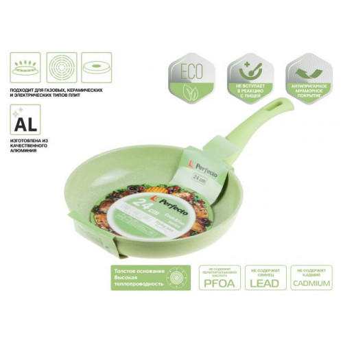 Сковорода ф 24х5.5 см, алюм., антиприг. покр., серия Cook&Fun, зеленая, PERFECTO LINEA