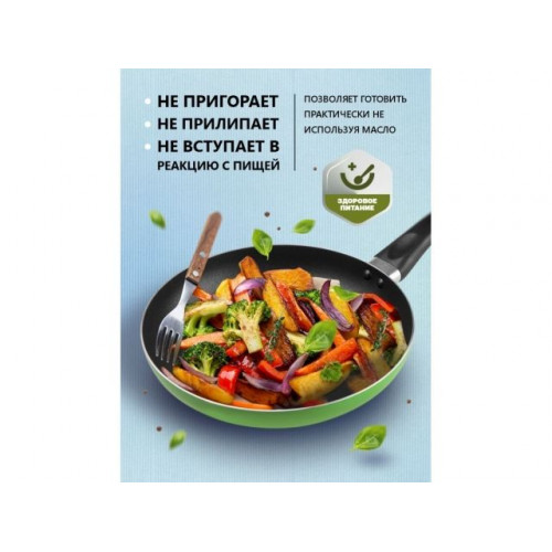 56-240431 Сковорода ф 24х4.3 см, штамп., алюм., антиприг. покр., серия STARCOOK, зеленая, PERFECTO LINEA,