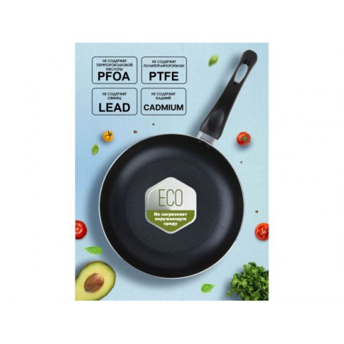 Изготовлена из алюминия с антипригарным покрытием NON-STICK COATING, без использования перфтороктановой кислоты (PFOA).