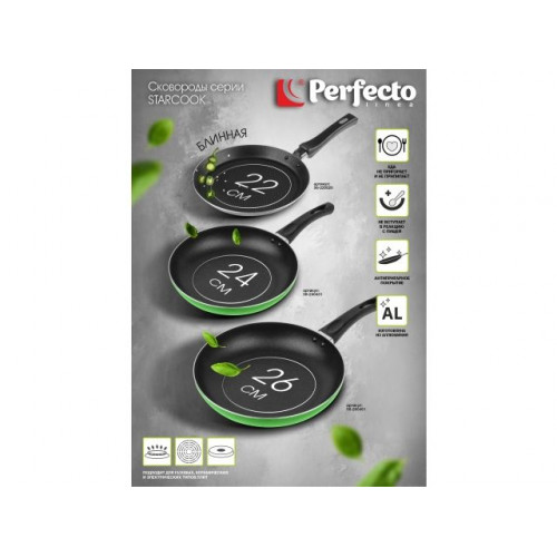 Сковорода ф 26х4.5 см, штамп., алюм., антиприг. покр., серия STARCOOK, зеленая, PERFECTO LINEA