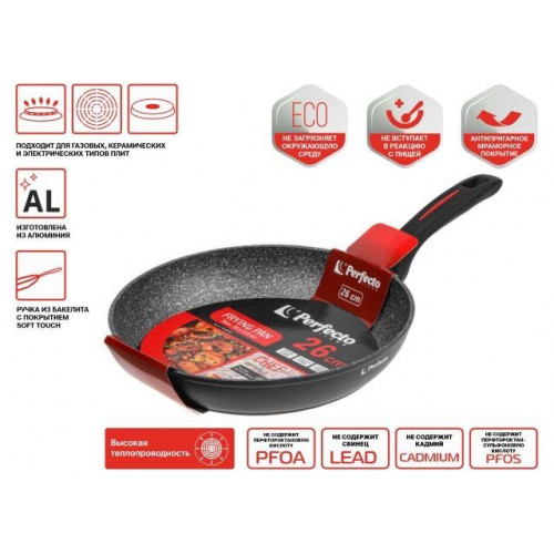 Сковорода ф 26х5.0 см, алюм., антиприг. покр., серия CHEF, PERFECTO LINEA