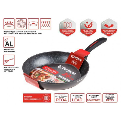 Сковорода ф 26х5.3 см, алюм., антиприг. покр., для индукц. плит, серия CHEF, PERFECTO LINEA