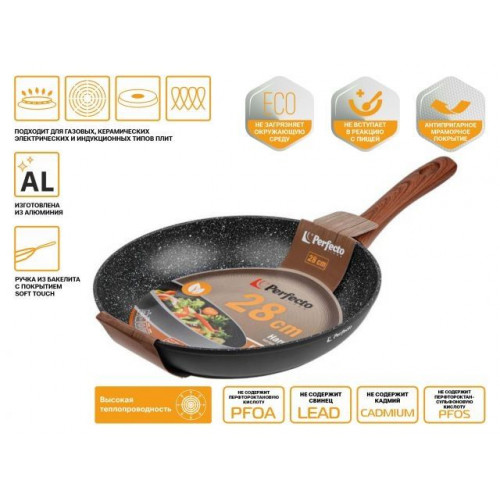Сковорода ф 28х5.2 см, алюм., антиприг. покр., для индукц. плит, серия Hardy Plus, PERFECTO LINEA
