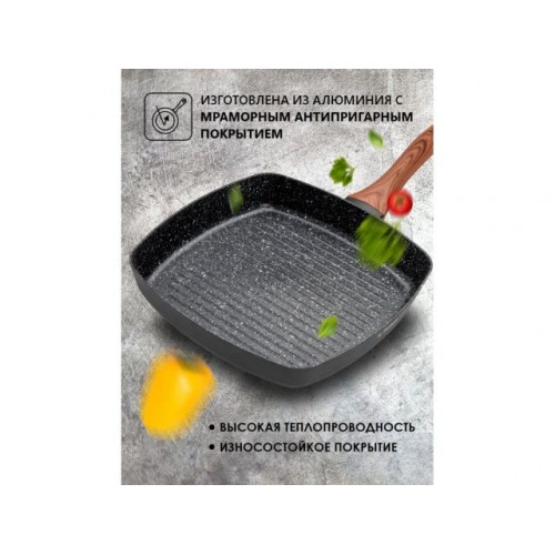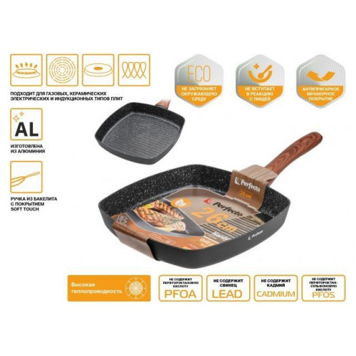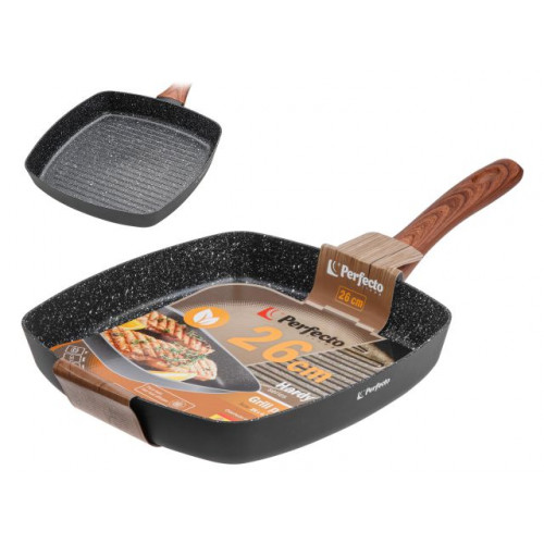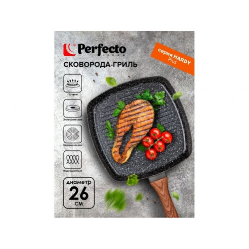 Сковорода-гриль, ф 26х4.3 см, алюм.антиприг.покр., для индукц.плит, серия Hardy Plus, PERFECTO LINEA