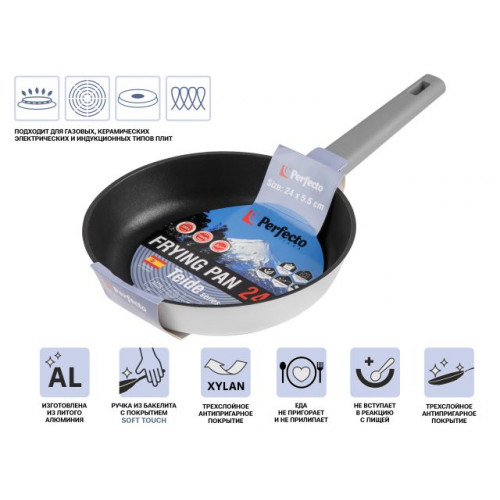 Сковорода литая ф 24х5.5 см, алюм., антиприг. покр., для индукц. плит, серия Teide, PERFECTO LINEA