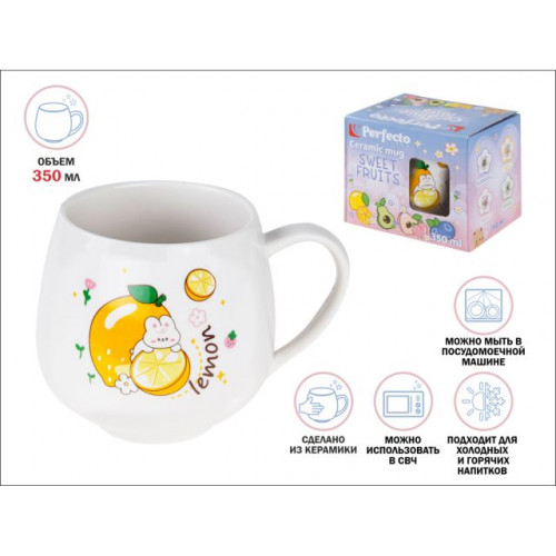 Кружка керамическая, 350 мл, Sweet fruits, лимон, PERFECTO LINEA