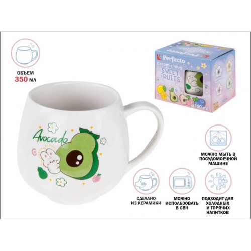 Кружка керамическая, 350 мл, Sweet fruits, авокадо, PERFECTO LINEA