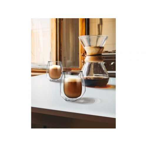 Бокал стеклянный с двойными стенками дольше сохраняет температуру напитка. Горячее будет долго не остывать, а холодные напитки, напротив, не будут становится теплыми.Стакан не будет обжигать руки и деформировать поверхности. Такие способности придают этому стакану двойные стенки и прослойка воздуха, находящаяся между ними.