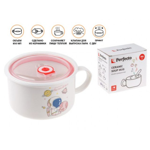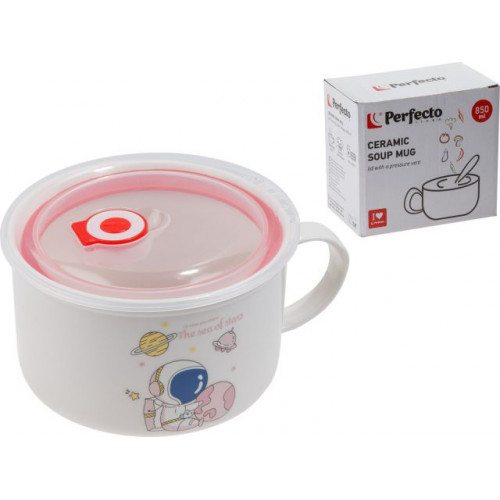 Кружка для супа с крышкой с паровыпуском, 850 мл, керамическая, COSMOS-2, PERFECTO LINEA