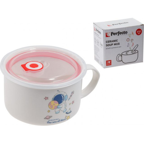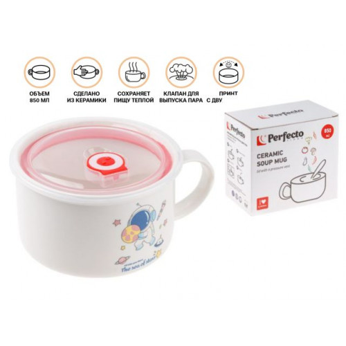 Кружка для супа с крышкой с паровыпуском, 850 мл, керамическая, COSMOS-4, PERFECTO LINEA