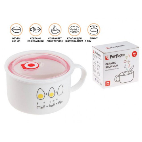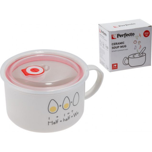 Кружка для супа с крышкой с паровыпуском, 850 мл, керамическая, EGG, PERFECTO LINEA