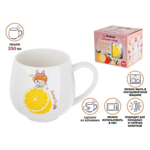 Кружка керамическая, 350 мл, Sweet fruits, лимон, PERFECTO LINEA