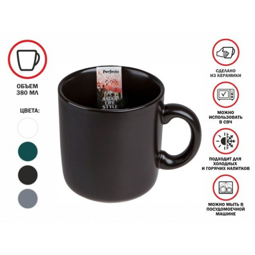 Кружка керамическая, 380 мл, серия ASIAN, черная, PERFECTO LINEA