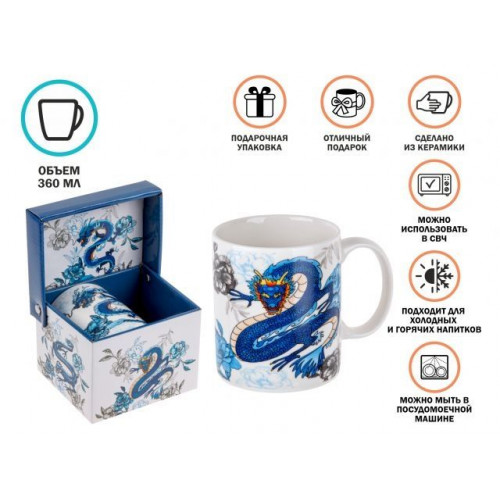 Кружка украшена принтом дракона - символом плодородия, жизни, света, силы, мудрости, что делает ее отличным подарком для любителей азиатской культуры.