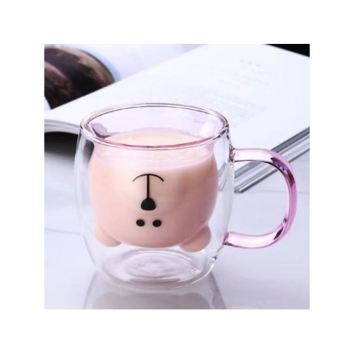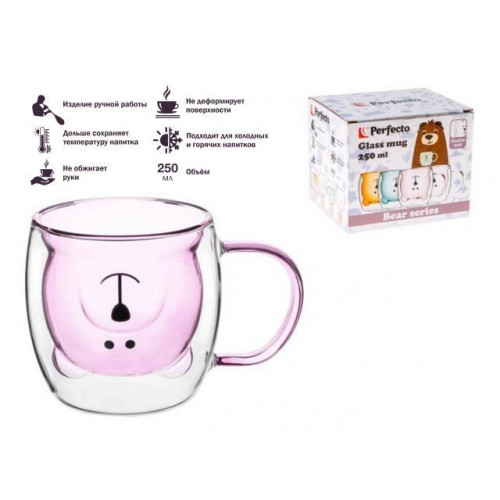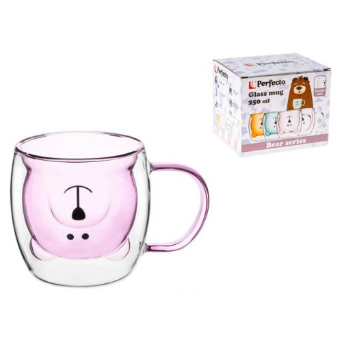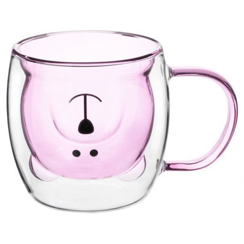 Кружка стеклянная с двойными стенками, 250 мл, розовая, серия Bear, PERFECTO LINEA