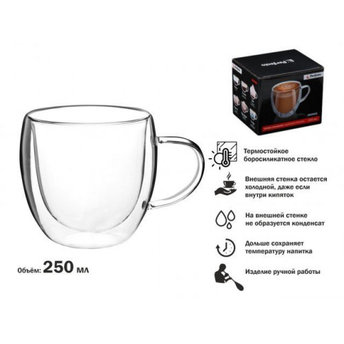 Бокал стеклянный с двойными стенками дольше сохраняет температуру напитка. Горячее будет долго не остывать, а холодные напитки, напротив, не будут становится теплыми.Стакан не будет обжигать руки и деформировать поверхности. Такие способности придают этому стакану двойные стенки и прослойка воздуха, находящаяся между ними.