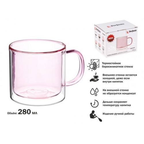 Кружка стеклянная с двойными стенками дольше сохраняет температуру напитка. Горячее будет долго не остывать, а холодные напитки, напротив, не будут становится теплыми.Стакан не будет обжигать руки и деформировать поверхности. Такие способности придают этой кружке двойные стенки и прослойка воздуха, находящаяся между ними.