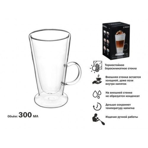 Кружка стеклянная с двойными стенками, 300 мл, серия BAILE, PERFECTO LINEA