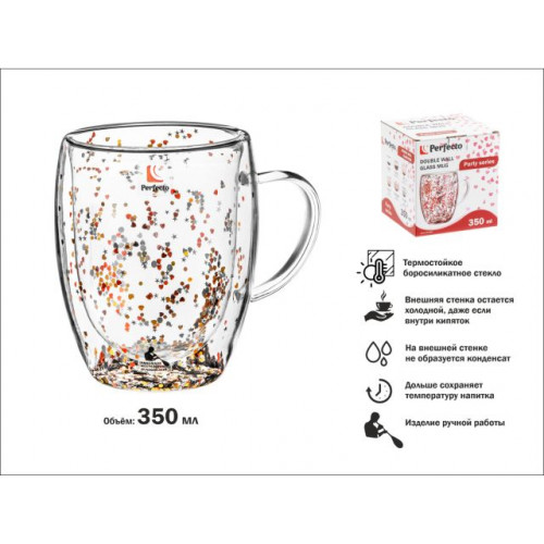 Кружка стеклянная с двойными стенками, 350 мл, серия Party, PERFECTO LINEA
