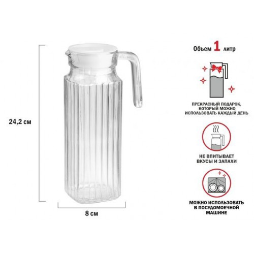 Кувшин стеклянный, 1 л., с крышкой, Diamond, PERFECTO LINEA