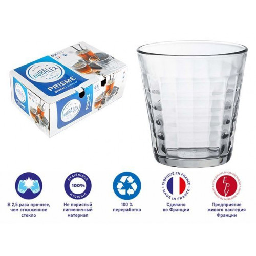 Коллекция Prisme - проявление моды во всех ее гранях. Практичные, эстетичные, прочные и эргономичные стаканы культового бренда ТМ Duralex . Стеклянная посуда ТМ Duralex производится во Франции с 1945 года. Процесс закаливания придает стеклу ТМ Duralex особую прочность. Во время закаливания стекло ТМ Duralex предварительно нагретое до 700°С, подвергается резкому охлаждению холодным воздухом. Этот процесс делает стекло ТМ Duralex в 2,5 раза более устойчивым к механическим повреждениям, чем отожженное стекло. Характеристики: ударопрочное закаленное стекло, термостойкость до 130 ° C (EN 1183), можно мыть в посудомоечной машине, подходит для использования в микроволновой печи.