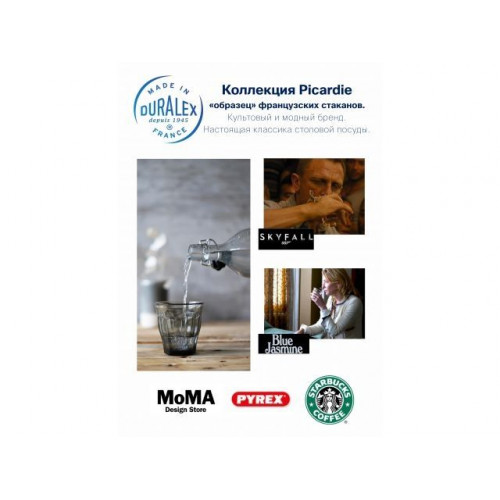 Коллекция Picardie известна своим культовым дизайном от ТМ Duralex , который подойдет к любому столу и событию. Практичные, эстетичные, прочные и эргономичные стаканы. Стеклянная посуда ТМ Duralex производится во Франции с 1945 года. Процесс закаливания придает стеклу ТМ Duralex особую прочность. Во время закаливания стекло ТМ Duralex , предварительно нагретое до 700°С, подвергается резкому охлаждению холодным воздухом. Этот процесс делает стекло ТМ Duralex в 2,5 раза более устойчивым к механическим повреждениям, чем отожженное стекло. Характеристики: ударопрочное закаленное стекло, термостойкость до 130 ° C (EN 1183), можно мыть в посудомоечной машине, подходит для использования в микроволновой печи.