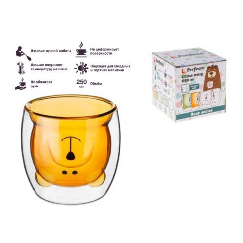 Стакан стеклянный с двойными стенками, 250 мл, оранжевый, серия Bear, PERFECTO LINEA
