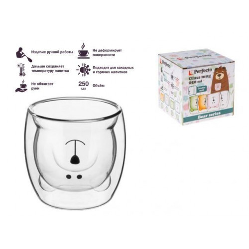 Стакан стеклянный с двойными стенками, 250 мл, серия Bear, PERFECTO LINEA