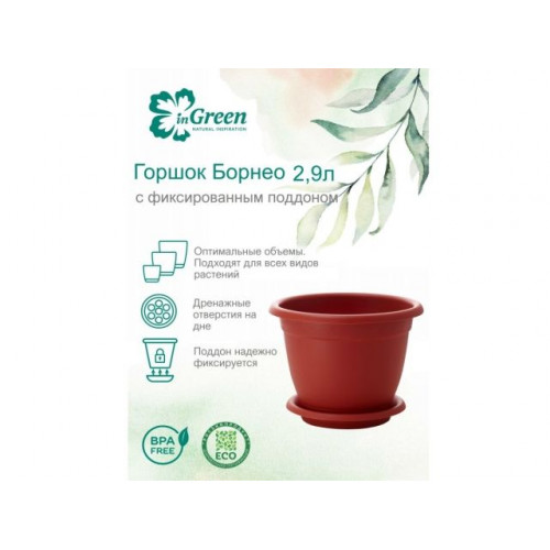 Горшок для цветов с подставкой, 2,9 л., Борнео, терракотовый, InGreen