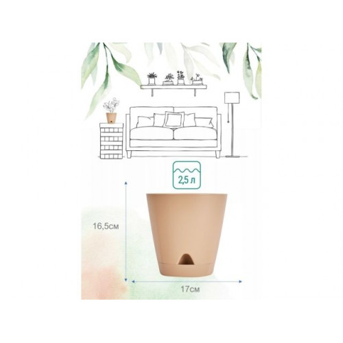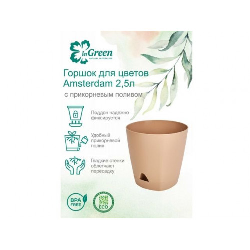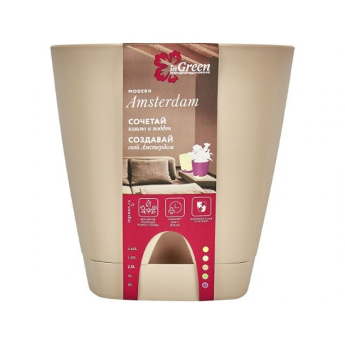 Горшок для цветов с прикорневым поливом, 2,5 л., Amsterdam, молочный шоколад, InGreen