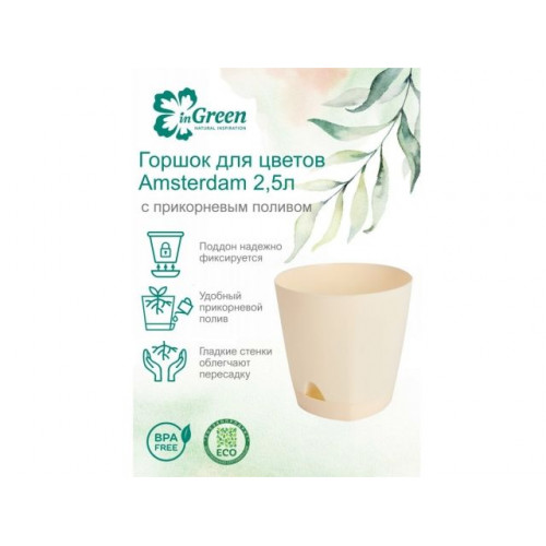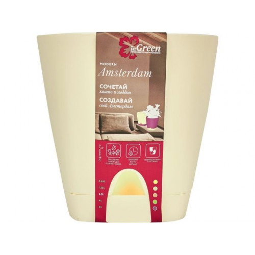Горшок для цветов с прикорневым поливом, 2,5 л., Amsterdam, сливочный, InGreen