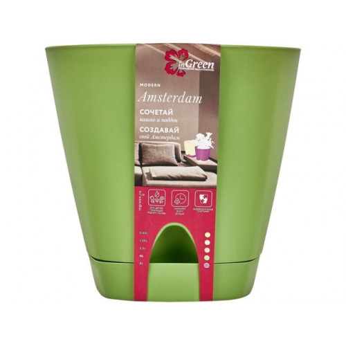 Горшок для цветов с прикорневым поливом, 4 л., Amsterdam, оливковый, InGreen