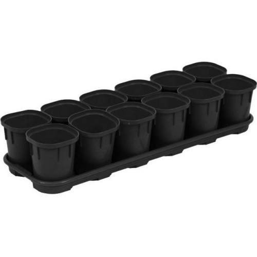 Набор горшков для выращивания рассады с поддоном, 12 шт х 200 мл, Smart Solution, оникс, INGREEN