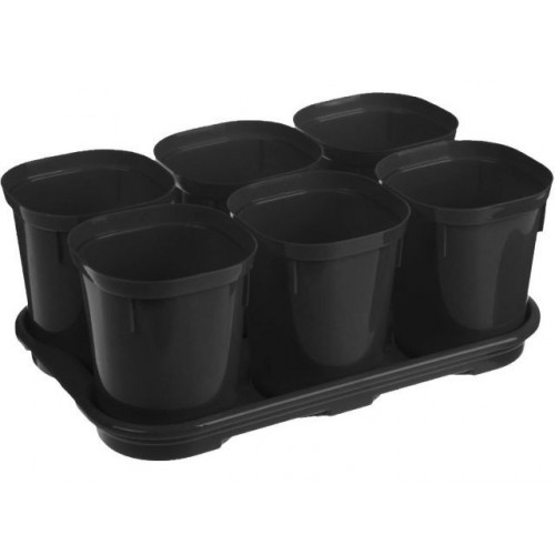 Набор горшков для выращивания рассады с поддоном, 6 шт х 400 мл, Smart Solution, оникс, INGREEN