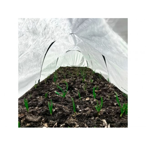 Материал: спанбонд СУФ (ширина: 1,6 м, плотность: 42 гм.кв.), труба ПНД (длина: 1,8 м диаметр: 16 мм, толщина стенки: 2 мм, цвет: черный, края трубы запил под 45 градусов (для установки в грунт вместо штыря)).