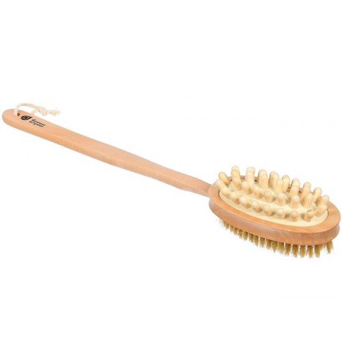Щетка деревянная, двусторонняя с импульсным массажером, 42 см,"Банные штучки"