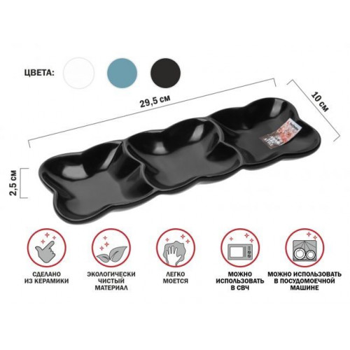 Блюдо 3-х секционное керамическое, 29.5х10х2.5 см, серия ASIAN, черное, PERFECTO LINEA