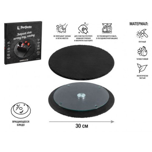 Блюдо для подачи сервировочное, вращающееся ф30 см, сланец, PERFECTO LINEA
