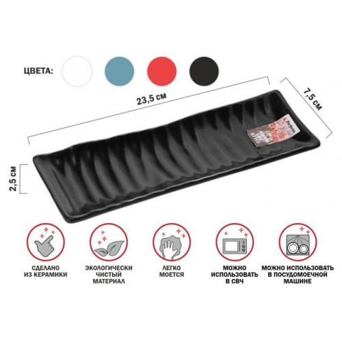 Блюдо керамическое, 23.5х7.5х2.5 см, серия ASIAN, черное, PERFECTO LINEA