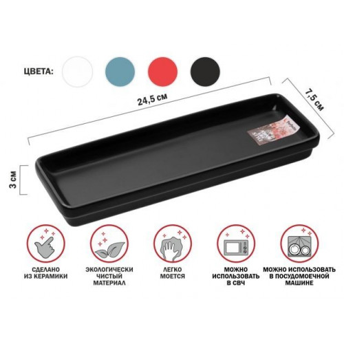 Блюдо керамическое, 24.5х7.5х3 см, серия ASIAN, черное, PERFECTO LINEA