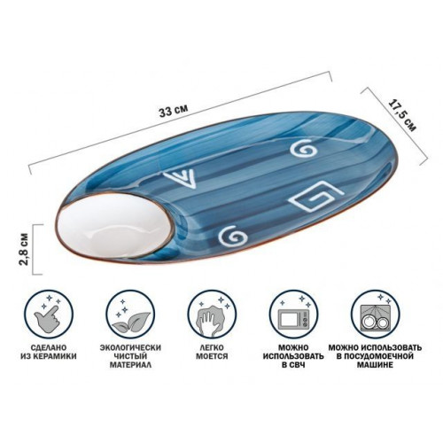 Блюдо керамическое, 33х17.5х2.8 см, серия BLUE MARINE, PERFECTO LINEA