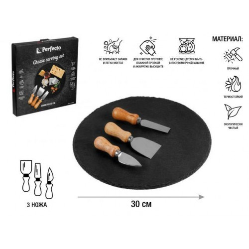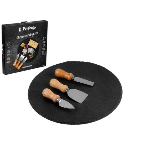 Набор для подачи сыра (блюдо сланец ф30см + 3 ножа), PERFECTO LINEA
