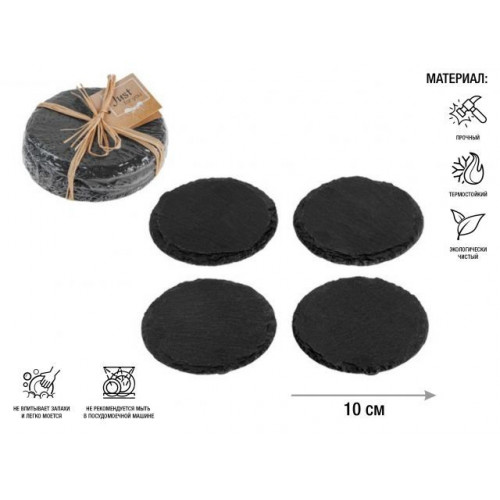Подставка для посуды, 4 шт., ф10 см., сланец, PERFECTO LINEA