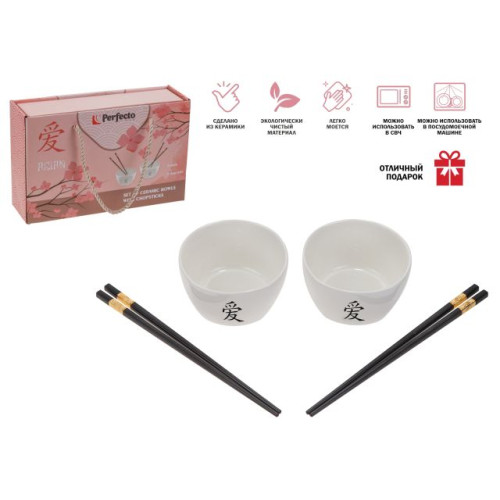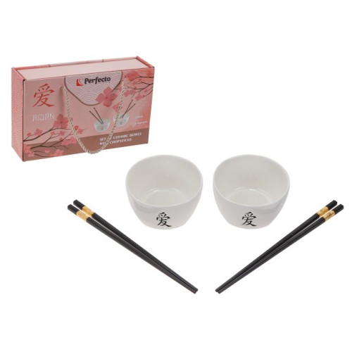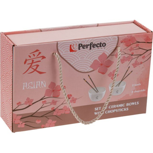 Набор керамических мисок с палочками для еды (2 миски+4 палочки), серия Asian, PERFECTO LINEA