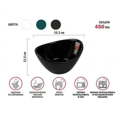 Салатник керамический, 15.3х12.5 см, серия ASIAN, черный, PERFECTO LINEA