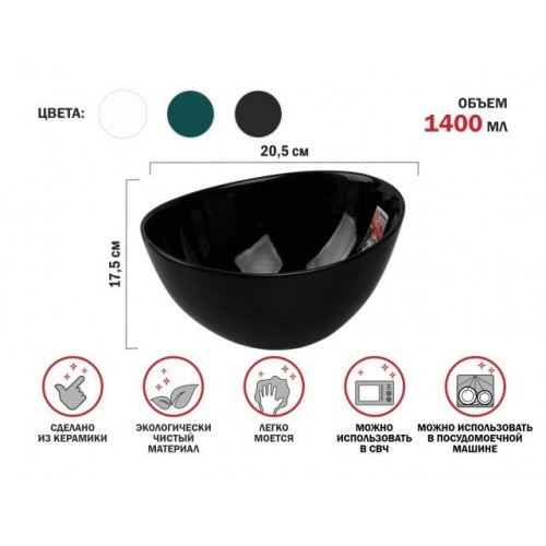 Салатник керамический, 20.5х17.5 см, серия ASIAN, черный, PERFECTO LINEA