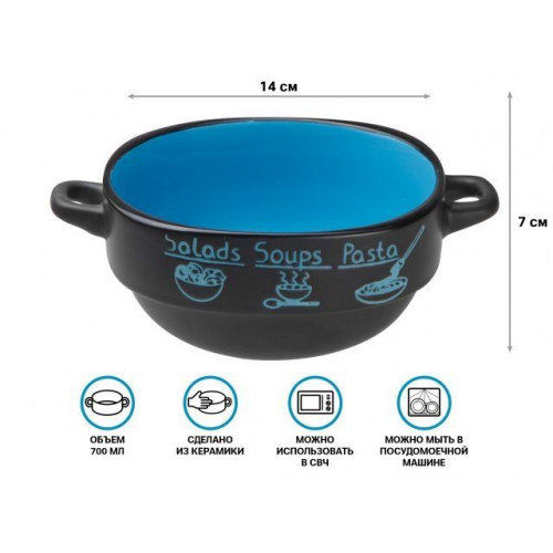 Супница керамическая, 140 мм, круглая, серия Харчо, черно-голубая, PERFECTO LINEA