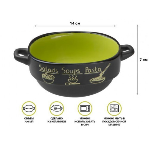 Супница керамическая, 140 мм, круглая, серия Харчо, черно-зеленая, PERFECTO LINEA