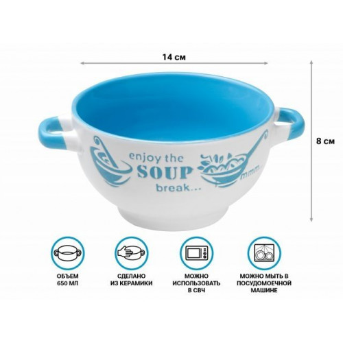 Керамическая супница является стильныи предметом сервировки и предназначен для подачи первых блюд.Для удобства предусмотрены ручки по бокам емкости.