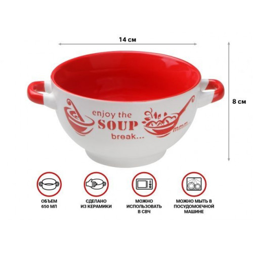 Керамическая супница является стильныи предметом сервировки и предназначен для подачи первых блюд.Для удобства предусмотрены ручки по бокам емкости.